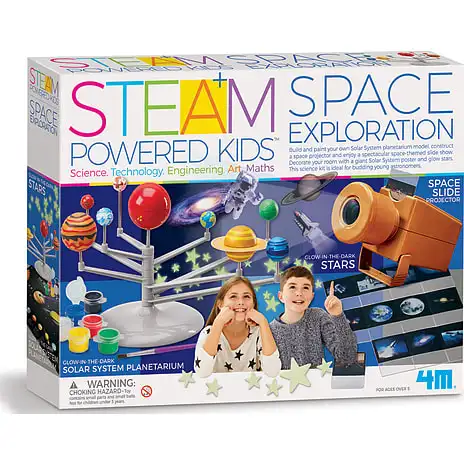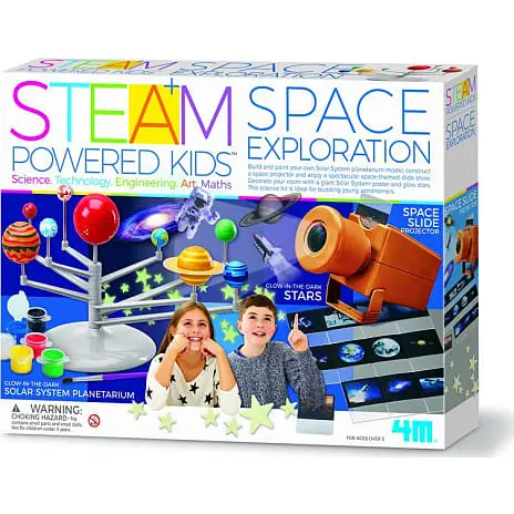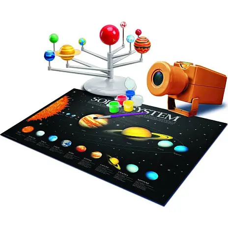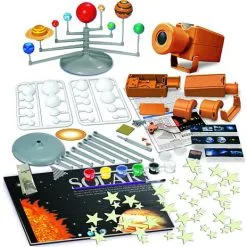 Byg og mal din egen planetarie-model af solsystemet, byg en rumprojektor, og oplev et spektakulært slide-show med rumtema. Udsmyk dit værelse med en kæmpe plakat over solsystemet og med selvlysende stjerner. Dette videnskabelige sæt er ideelt til spirende unge astronomer.