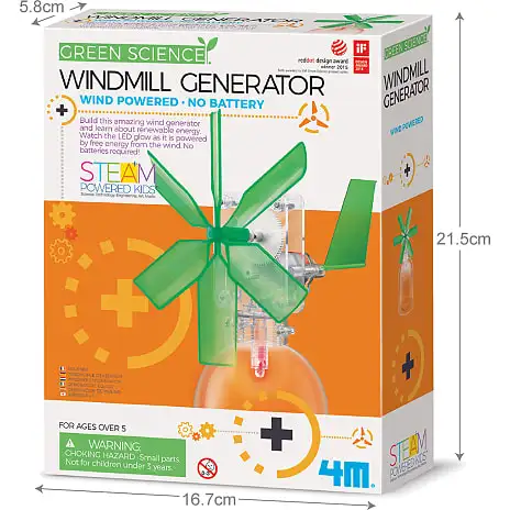 Byg denne fantastiske vindmøllegenerator og lær om vedvarende energi. Betragt LED-lyset, når det får tilført gratis energi fra vinden. Der medfølger udførlig dansk manual.