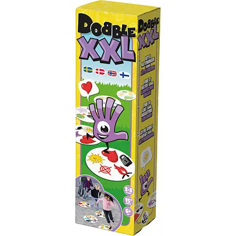 Dobble er en moderne klassiker, og er et hurtigt spil, der er let at lære! Reaktions- og opfattelsesevnen er i fokus, når man hurtigst muligt skal spotte et identisk symbol på to kort, der hver har fem forskellige symboler Lige præcis dette er perfekt til børn, der fra naturens side er bedre til det end voksne! Nu kommer Dobble i en kæmpe udgave med store måtter, der kan smides på jorden!