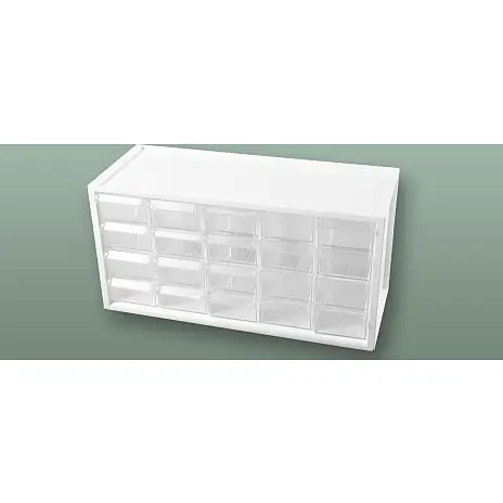 Praktisk og multianvendelig opbevaringsboks med 20 skuffer.