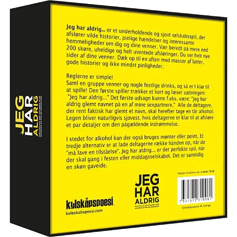 Den første deltager trækker et kort og læser sætningen: ”Jeg har aldrig…”.