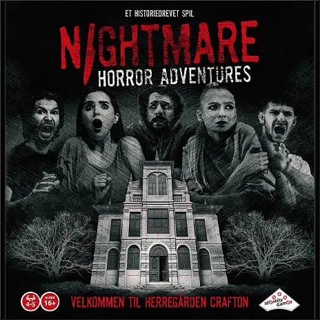 Velkommen til Nightmares hårrejsende tur til Grafton Mansion – tør du deltage i dette gysereventyr? Du spiller et forældreløst barn, som femten år efter dine forældre tragiske død genbesøger det sted, hvor de brændte ihjel. Men du er så traumatiseret at du intet husker fra den skæbnesvangre nat. Du sætter dig for at løse mysteriet, og opklare mordet. Du er tilbage på Crafton Mainson, og det første du ser, er en skræmmende hilsen skrevet i blod: Velkommen tilbage. Men gyset er først begyndt! Saml beviser, og udpeg hvem morderen er – måske det er en af dine medspillere, som under hele spillet har forsøgt at sabotere din jagt på morderen. Nightmare kan spilles af 3-5 spillere. Alder 16+