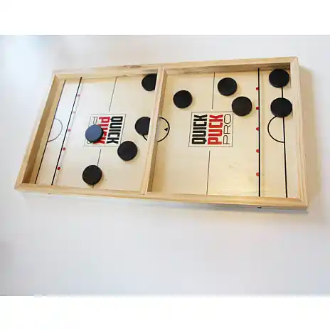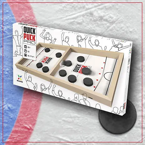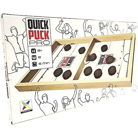 Quick Puck Pro er et superenkelt og super sjovt spil. Let at lære, endnu lettere at komme i gang. Spillet er klar til at løbe lige ud af pakken. Spillerne konkurrerer om at skyde skiver hurtigst og med størst mulig træfsikkerhed gennem åbningen mellem de to banehalvdele. Du vinder straks runden, når alle skiverne befinder sig på modspillerens banehalvdel. Kom godt i gang og bombardér din modstander med pucker for at tage sejren hjem. Quick Puck Pro er et tempofyldt spil og god underholdning for alle aldre.