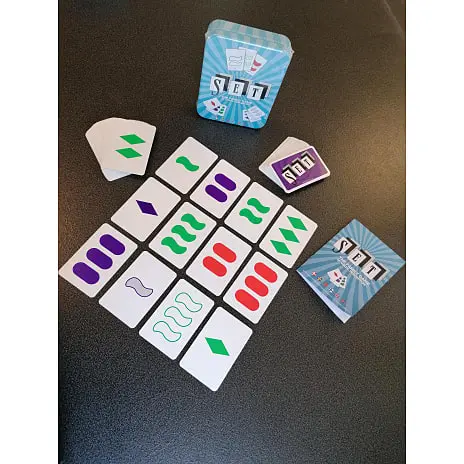 Hjernevridende sjovt spil. Hvert kort indeholder 1-3 objekter, i forskellige farver, former og skygger. Den første til at få øje på et sæt af tre indsamler disse kort. Kortene bliver erstattet med nye kort og spillet fortsætter.