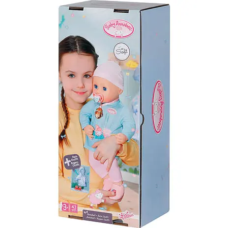 – Baby Annabell Annabell dukke plus regnvejrsoutfit 43 cm med jakke, kjole, bukser, hat, sko og gummistøvler.