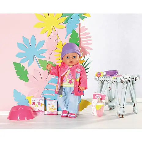 – BABY born Magi pigedukke alle årstider 43 cm med hue, jakke, T-shirt, bukser og sko