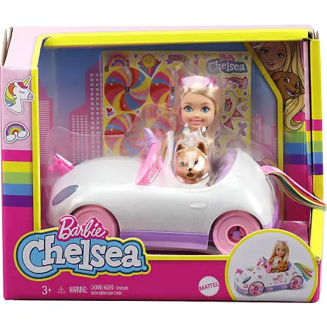 Små kreative hjerner vil opdage uendelige muligheder for leg, når de kører af sted sammen med Chelsea-dukken og hendes kæledyr i den yndige, enhjørningeinspirerede bil! Den supersøde, åbne bil, der har plads til Chelsea-dukken og hendes kæledyr, har et skinnende hvidt karrosseri og lilla kanter. Blandt de fantastiske detaljer, der sætter prikken over i’et, er et sølvfarvet ornament udformet som et enhjørningehoved og en hale i alle regnbuens farver. Børn kan bruge det medfølgende ark med klistermærker til at skabe et tema for Chelsea-dukkens køretur. Derefter kan de placere vennerne på sædet og tage dem med på alle mulige eventyr! Med alle de søde detaljer er Chelsea-legesættet en fantastisk gave til børn i alderen 3 til 7 år. Dukken på 15 cm kan ikke stå af sig selv. Farver og mønstre kan variere.