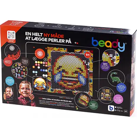 Placér Beady perlepladerne på en tablet eller mobil, og piggene lyser op og viser, hvor du skal lægge perlerne. Størrelsen på motivet bestemmer du, alt efter hvor mange plader du klikker sammen. Du kan lave mange seje mønstre eller vælge at være flere om at lave det samme mønster. Undgå perleskader og skrab det færdige motiv af pladen med Beady perleskraber.