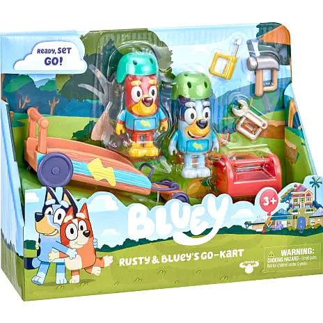 Den 2-sædet Gokart er masser af sjov og fart for vennerne Bluey og Rusty til at køre i, og skulle den gå i stykker undervejs, så kan de reparere gokarten med det værktøj, som følger med legesættet.