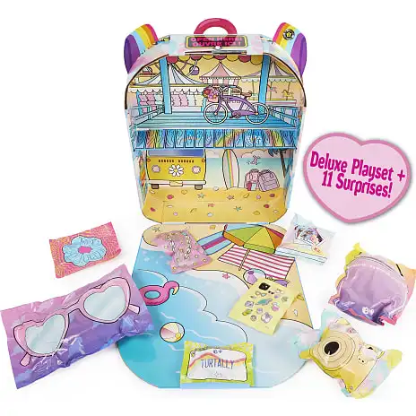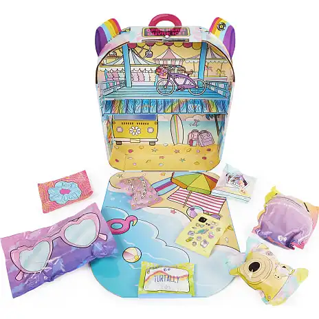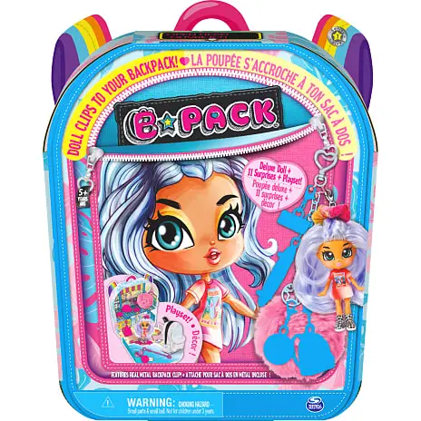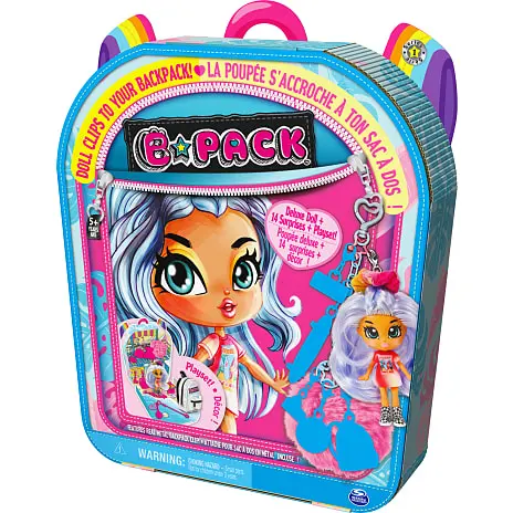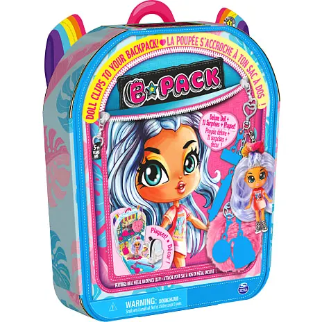 Lad os se, hvad der kan være i din rygsæk. Pak den ud for at opdage en eksklusiv deluxe BPack-dukke, Reina Reef og 11 overraskelser. Deluxe BPack-rygsækæsken kan endda bruges som et tema-legesæt til din BPack-dukke, når du har åbnet den. BPack pigelegetøj er stilfulde og trendy små dukker på 8,9 centimeter med fashionable overraskelser, inklusive en clip-on metalkæde til at forvandle din BPack dukke til et cool accessory til rygsækken. Fold forsiden af rygsækken ned, hold den tilbage og afslør derefter rummene for at finde de finurlige overraskelsesposer, der indeholder din dukke og al dens tilbehør. Hver pose er fint udsmykket med genstande, du virkelig ville finde i din egen rygsæk: solbriller, en vandflaske, hårtilbehør og mere. Åbn hver overraskelsespose for at pakke din Reina Reef-figur og hendes tilbehør ud: fire charms, en blød pompom, ministofrygsæk, ID-kort og clip-on-kæden. Med sin overdimensionerede surf-t-shirt, ternede sneakers og bløde lavendelfarvede hår holdt tilbage af en scrunchie, er denne VSCO-pige klar til at hænge ud ved stranden. Du kan lege med dukken uden kæden ved at mikse og matche Reina Reefs tilbehør og lege med hendes look, udstyre hende med charms som et skateboard og lære mere om hende på ID-kortet. Du kan derefter placere din dukke og lege med den i kassen. Baggrunden med strand og mole gør dette BPack-legesæt til det perfekte sted for din historiefortælling. Mens du er på farten, kan du sætte kæden på din lille dukke, vedhæfte hendes tilbehør og derefter klipse Reina Reef til din rygsæk, taske eller pung. For nem opbevaring kan du fjerne tilbehøret fra kæden og opbevare charms og dukketøj inde i minirygsækken. Saml alle BPack-minidukkerne (sælges separat) og find din yndlingsstil, som E-Girl, Glam, Sporty og mere. Disse dukker er gode fødselsdagsgaver til piger, der nyder at samle modedukker og småt legetøj. Tag BPack Deluxe Rygsækken med hjem, og pak alle dine overraskelser ud.