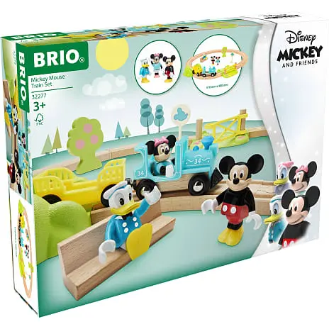 Der venter vidunderlige historier i dette Mickey Mouse togsæt 32277 med Disneytema. Tag med Mickey Mouse, Minnie Mouse og Anders And på eventyr på togbanen i træ. Med det ikoniske BRIO togbanedesign og magnetkoblinger kan dette sjove togsæt kobles sammen med andre BRIO passager- og godsvogne. Togsæt med 18 dele fra BRIO i træ med Disneytema med vores yndlingsfigurer fra Disney, tog og tilbehør. Tag med Mickey Mouse, Minnie Mouse og Anders And på et fantasifuldt togeventyr. Når barnet vokser, kan togbanen vokse med. Togbaneleg hjælper barnet med at udvikle sin finmotorik og rolleleg på en sjov og engagerende måde. Til børn i alderen 3+. Fremstillet i FSC-certificeret europæisk bøgetræ, kvalitetsplastik og fine metaldetaljer.