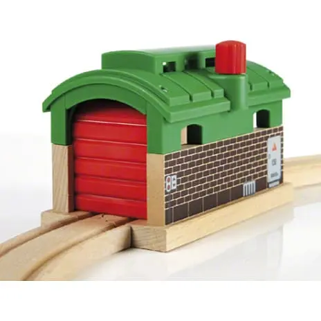Hvor tager togene sig en lur? I BRIO toggaragen selvfølgelig – det perfekte sted til vedligeholdelse af alle BRIO tog. Drej på håndtaget oven på garagen for at åbne porten. Med porten åben fungerer denne garage også som en tunnel. Fra 3 år.