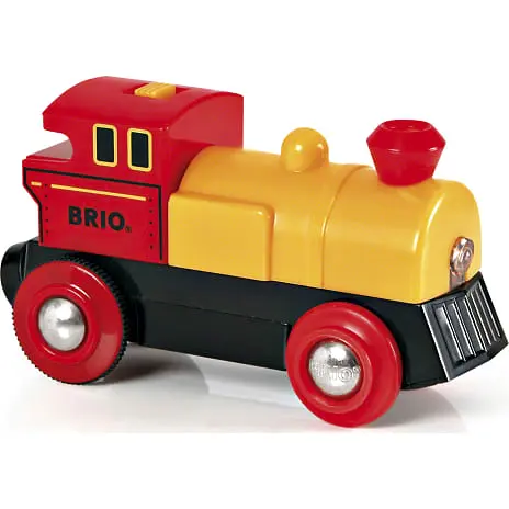 Få dampen op med dette røde, klassiske batteridrevne lokomotiv. De fremad- og bagudrettede funktoner og forlygterne som lyser op, er en sjov ledsager på togbanen. Bruger 1 stk. AAA batteri (ikke incl.). Fra 3 år.