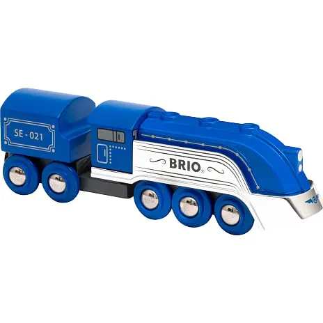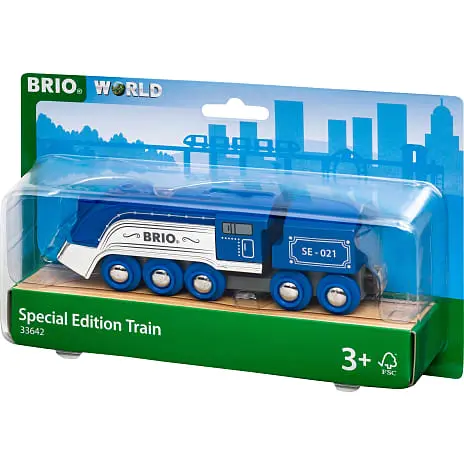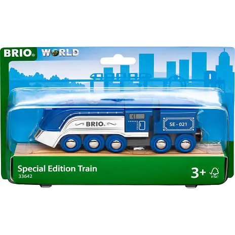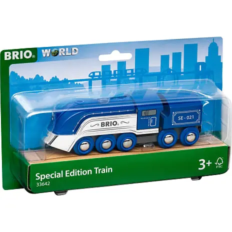 33642 Special Edition Tog (2021) er et pragtfuldt supplement til enhver BRIO World togbane. Togets unikke retro-futuristiske design er inspireret af strømlinede tog fra hele verden, og det har en finish med cool blå farver og blanke sølvdetaljer. Dette limited edition-tog kan kun købes i 2021, så gå ikke glip af chancen for at føje det til din togbane. Fremstillet i FSC®-certificeret europæisk bøgetræ, kvalitetsplastik og fine metaldetaljer. Et fantastisk supplement til enhver BRIO World togbane, der vokser og udvikler sig sammen med barnet. Virkelighedstro togbaneleg hjælper barnet med at forstå og lære om omgivelserne på en sjov måde og samtidig udvikle sine finmotoriske færdigheder. Til børn i alderen 3+.