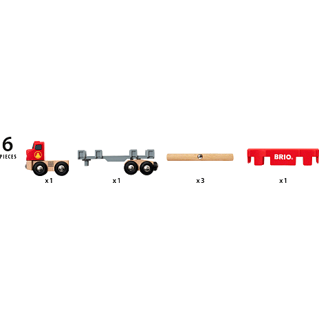 33657 Lastbil med tømmer er klar til at transportere store læs gennem BRIO World. Denne lange, røde semi lastbil med aftagelig trailer har en skjult motor, som der er adgang til, når man vipper førerkabinen frem, samt en magnet bagpå traileren til at forbinde den til en BRIO World godsvogn. Løft det røde trailerovertræk af for at få adgang til de tre tømmerstokke, der ligger sikkert under overtrækket med en metalpind til at forbinde dem til en magnetisk kran fra BRIO World togbanen. Tilslut lastbilen med tømmer til en BRIO World passagervogn eller godsvogn via BRIO magnetkobling, som er standard, bagpå traileren. Virkelighedsbaseret togbaneleg hjælper barnet med at forstå og lære om omgivelserne på en sjov måde og samtidig udvikle sine finmotoriske færdigheder. 6 dele. Til børn i alderen 3+.