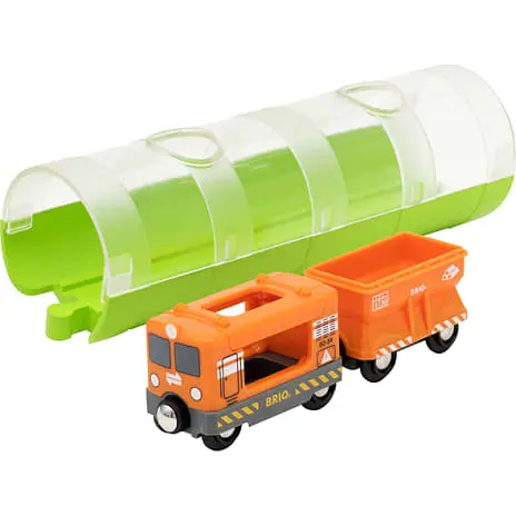 BRIO World godstog og tunnel. Dette lokomotiv kører op og ned af bjerge og gennem dale for at levere gods til havnen eller transportcenteret i BRIO World. Der er også plads til en lokomotivfører på lokomotivet. Inklusive genbrugspakke, der kan omdannes til gennemsigtig tunnel for spændende leg. Tog og tunnel passer til alle BRIO World togbaner for mere uendelig leg. Materialer af enestående BRIO-kvalitet, kompetent udviklet med fokus på sikre dele. Fra 3 år.