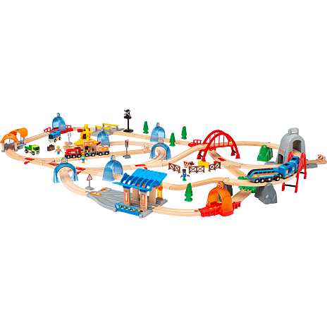 Hop om bord i den ultimative Smart Tech Sound-oplevelse. 33977 Action Tunnel deluxe-sæt består af 91 dele med togbanesjov og højdepunkter fra vores interaktive Smart Tech Sound-sortiment. Rejs rundt på denne store togbane med tog, bus eller lastbil, og udforsk alle de områder, BRIO World tilbyder – fra den fredelige bondegård til den actionfyldte løfte- og læssestation. Tag derefter dit togbaneeventyr op på nye højder med det fantastiske Smart Tech Sound-lokomotiv med optagefunktion og Action Tunnel tilbehør – hør din egen stemme og andre programmerede lyde afspillet via det batteridrevne tog, når det kører rundt på skinnerne og reagerer på andet Smart Tech Sound-legetøj med lys, bevægelse og spændende lyde. Hop om bord i den ultimative Smart Tech Sound oplevelse med 33977 Action Tunnel Deluxe-sæt. Dette togsæt med 91 dele har masser af køretøjer, stationer og togbanetilbehør herunder Smart Tech Lokomotiv med optagefunktion. Der findes flere muligheder for tilpasning, hvis du forbinder toget med Smart Tech Sound app. Et fantastisk supplement til enhver BRIO World togbane fremstillet i FSC-certificeret europæisk bøgetræ, kvalitetsplastik og fine metaldetaljer. Virkelighedstro togbaneleg hjælper barnet med at forstå og lære om omgivelserne på en sjov måde og samtidig udvikle sin finmotorik. Til børn i alderen 3+.: Lokomotivet bruger 2 stk. AAA batterier (ikke incl.).
