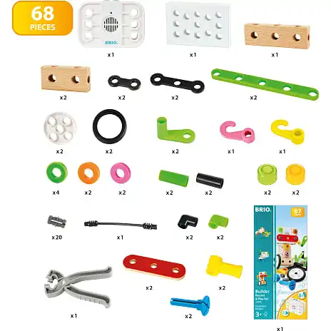 Væk dine BRIO Builder-byggerier til live med BRIO sæt med optager og afspiller – det perfekte byggelegetøj til at udfordre fantasien for spirende ingeniører. Byggesættet indeholder 67 dele, en enhed til at optage og afspille og værktøj, der hjælper dig med at bygge forskellige ting. Enheden til at optage og afspille bringer legen op på et nyt niveau, da du kan tilpasse legetøjet med den tale og de lyde, du har optaget. Bring dine BRIO Builder byggerier til live med sættet med optager og afspiller. Legesæt med 67 dele, værktøj og inspirerende vejledning. Byg nyt, sejt legetøj, optag dine egne lyde, og lyt til dem, mens du leger. Barnet leger og lærer ved at bruge sin fantasi og evner til problemløsning og til at finde frem til byggeløsninger. Udvid legeoplevelsen, da alle komponenter er kompatible med BRIO Builder-systemet. Optager- og afspiller modul bruger 3 stk. LR44 battterier (incl.). Fra 3 år.