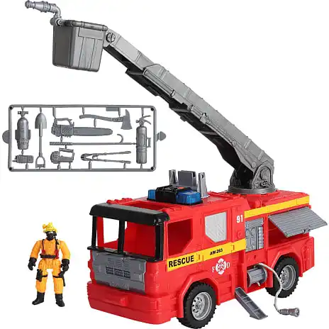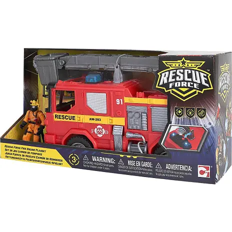 Brandchef Anders opkræver undsætning igen! Kør med og hjælp ham og redningsstyrken med at redde dagen. Tryk på knapperne for at aktivere redningslys, sirener og lyde. Chief Anders passer også i førerhuset oven på den udtrækkelige stige. Skub sidepanelet åbent, og rul den udtrækkelige slange ud. Bagdøren åbnes for at passe ind i den poserbare figur. Vip sidepanelet op, og placer tilbehør til brandslukning. Brandbilen er frihjulet, så du kan rulle chef Anders til enhver mission!