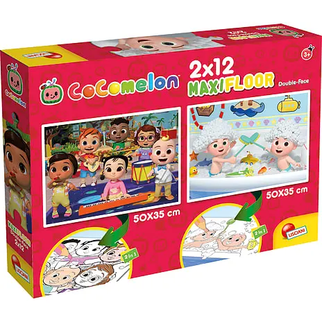 Cocomelon maxifloor puslespil 2 x 12 brikker. Indeholder 2 puslespil i en. Puslespillene måler 50×35 cm.