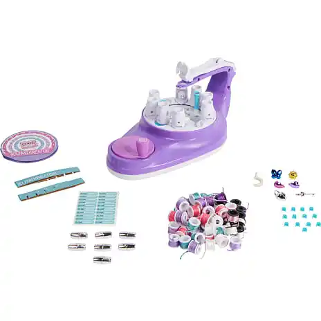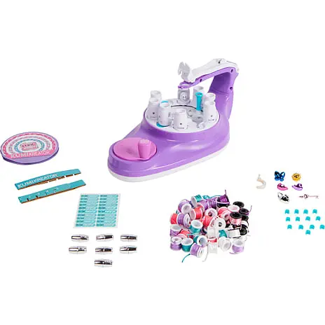 Drej og flet for at skabe venskabsarmbånd og halskæder til dig og dine BFF’ere med Cool Maker KumiKreator 3-i-1. Dette Cool Maker-sæt til at fremstille armbånd er inspireret af det japanske håndværk Kumi-armbånd (Kumihimo betyder på japansk “samlede tråde”) og gør det sjovt, hurtigt og nemt at skabe stilfulde og svære Kumi-armbånd og -halskæder. Cool Maker KumiKreator 3-i-1 har 56 spoler med farverig snor og alt, hvad du har brug for til at lave op til fem venskabsarmbånd og to halskæder, som du kan lave præcist, som du vil med skinnende venskabsperler. Vælg et armbånd- eller halskædemønster fra designbogen, eller lav dit eget. Vælg den tråd, du ønsker, sæt de brugsklare spoler i maskinen efter dit design og drej for at skabe dit smykke. Mens du drejer håndtaget, danser spolerne rundt om maskinen og fletter på magisk vis dit mønster på få minutter. Fjern dit venskabsarmbånd eller halskæde fra maskinen, og sæt en lås fast i den ene ende – ingen knuder er nødvendige. Vælg mellem syv forskellige venskabsperler, der passer sammen: to halvdele af et hjerte, en lås og en nøgle, en sød sommerfugl og solen og månen. Sæt din perle på dit smykke og afslut med den anden del af låsen. Design, tag det på og del dine unikke Kumi-designs med dine BFF’ere, og mix og match for at få accessories til ethvert outfit. Ønsker du endnu flere måder at udtrykke dig selv på med Cool Maker, kan du sy din egen mode med Stitch ‘N Style Fashion Studio og lave stilfuld mani-pedi neglekunst med GO GLAM U-nique Neglesalon (sælges separat). Cool Maker legetøj og krea-sæt er gode gaver og er også perfekte aktiviteter til en overnatning, fødselsdagsfest, hjemme-spa-dag og meget mere. Tag fremstillingen af armbånd til næste niveau og drej og flet halskæder og armbånd med Cool Maker KumiKreator 3-i-1.