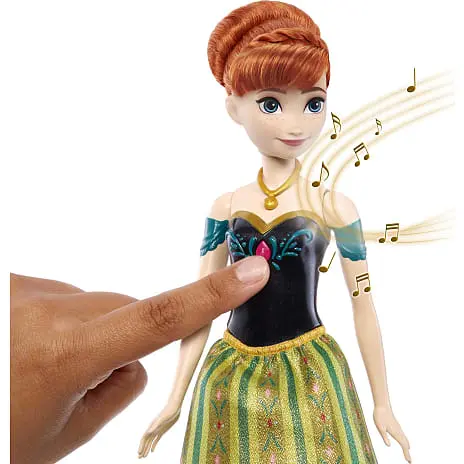 Denne dukke er inspireret af fanfavoritten Anna fra Disneys “Frost” og er klar til at spille sin kendingssang. Børnene vil elske at høre Anna-dukken spille et instrumentalt uddrag af “For the first time in forever”. Anne-dukken er iført sin karakteristiske halskæde og tøj til brug på slottet og spiller med et tryk på en knap. Fans kan genskabe deres musikalske yndlingsøjeblikke eller skabe nye eventyr. Dukken kan ikke stå af sig selv. Farver og mønstre kan afvige fra det viste.
