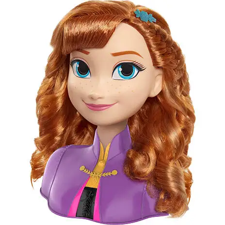 Inspireret af Disney’s Frozen kan du nu style dit helt eget Anna frisørhoved – ligesom du vil! Frisørhovedet har lange brune lokker. Håret er perfekt at flette, børste og til at lave flotte opsætninger. Den spirende frisør kan lave et utal af styles! Sættet er komplet med frisørhoved og masser af tilbehør.