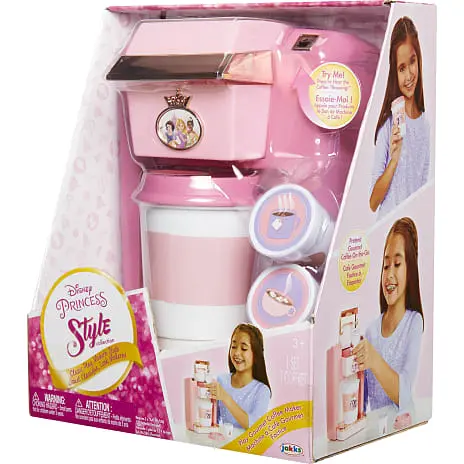 Stå op og gør hver dag fantastisk med Disney Princess Style Collection legetøjs-gourmetkaffemaskine. Grib din legetøjsrejsekop, isæt dine legetøjskaffekapsler og tryk på knappen. Legetøjs-gourmetkaffemaskinen laver endda realistiske kaffemaskinelyde!