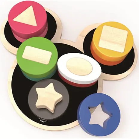 Dette puslespil er fyldt med fine motiver fra Mickey Mouse. Børn lærer om former og farver og får øvet deres motorik med puslespillet. Du skal stable brikkerne på de former, der passer sammen.