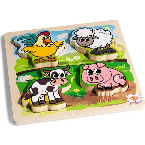Med dette følepuslespil kan dit barn få mulighed for at udforske sine sanser med et naturligt legetøj. Puslespillet er designet med motiver af bondegårdsdyr, hvor der under hver brik er tekstil som svarer til det dyr der er på brikken.