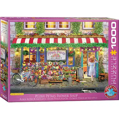 Dette puslespil illustrerer en fortryllende lokal blomsterbutik med en række farverige blomster for at invitere nysgerrige besøgende.
