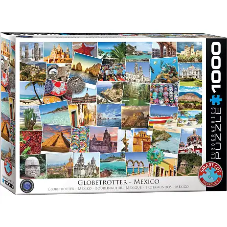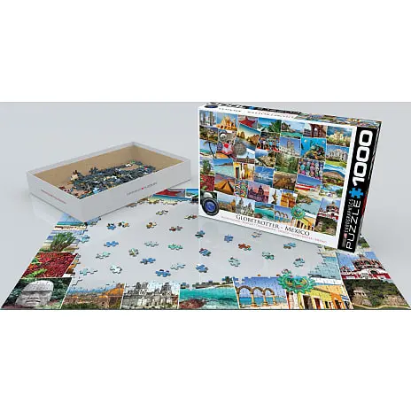 Dette puslespil illustrerer en collage af billeder, der viser en masse seværdigheder og andre kendetegn fra Mexico.