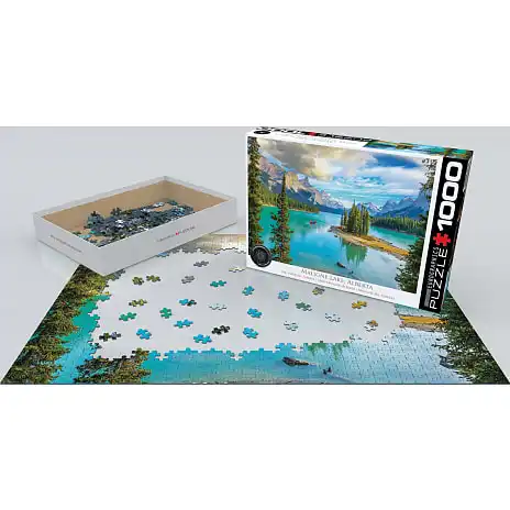 Dette puslespil illustrerer den idylliske ø Spirit Island, som er placeret i Maligne Lake, der er en sø i Jasper National Park, Alberta i Canada. Søen er berømt for farven på dets vand, de omkringliggende bjergtoppe og tre gletsjere synlige fra søen.