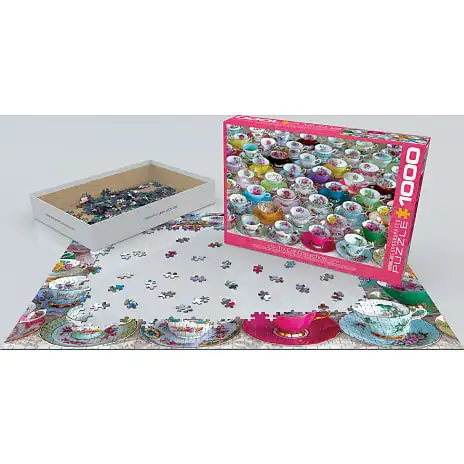 Dette puslespil illustrerer en overdådig samling af lyse farverige tekopper, der med garanti sørger for at krydre enhver tilværelse.
