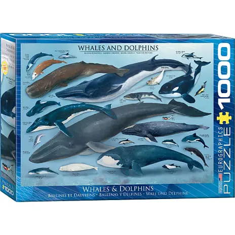 Dette puslespil illustrerer de haje og hvaler man kan finde i verdenshavene.