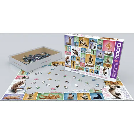 Dette puslespil illustrerer nogle af de grundlæggende yogapositioner, udført ved hjælp af dine purrende venner.