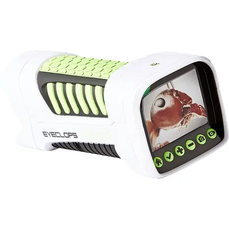 Opdag den usynlige verden omkring dig med det nye Eyeclops™ digitale mikroskop og kamera! Forstør op til 800x – indendørs og udendørs! Det indeholder en 2,4”-farveskærm, så du kan tage det med på farten og bruge det nærmest hvor som helst! Tag billeder og video og del dine oplevelser via det inkluderede USB-kabel eller MicroSD-kort! Den fantastiske mikroskopiske verden venter på dig! Hvad mon du finder?