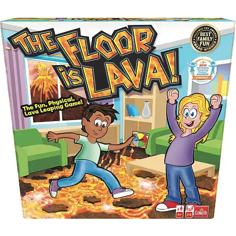 Forestil dig, at jorden er smeltet varm lava, mens du drejer farvehjulet for at hoppe til de rigtige skumstykker for at nå sikkerhed. Dette familiespil fremmer fysisk aktivitet, en aktiv fantasi og engagerende spænding for børn og voksne