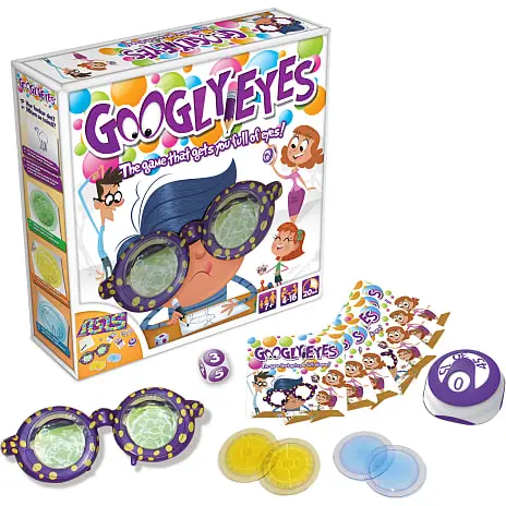 Googly Eyes er en sjov twist på klassiske tegnespil, som lader spillere af forskellig alder og evner konkurrere på lige vilkår, da brillerne gør det sjovt og udfordrende for alle. Der er ikke brug for, at du har store evner som kunstner, og reglerne er simple. Kast terningen og flyt din brik, og det felt, du lander på, fortæller hvilke farvelinser, du skal have på (let, medium og svær). Vælg derefter et kort, sæt timeren, og start med at tegne. Hvis dit hold gætter rigtigt må du kaste terningen og flytte igen. Hvis ikke, bliv hvor du er på brættet. Det første hold over målstregen vinder.