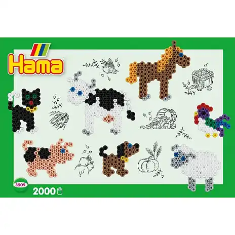 Æsken indeholder Ca. 2.000 perler, 1 medium sekskantet stiftplade nr. 329, motivark, vejledning og strygepapir.