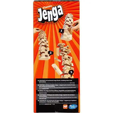 Byg det højeste tårn ved at skubbe, trække og stable Jengaklodserne, men sørg for at have en rolig hånd – ellers vælter Jenga-tårnet!