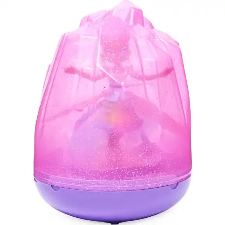 Når hun ikke flyver, kan du udstille din Pixie i hendes glitrende, klare krystalæg.