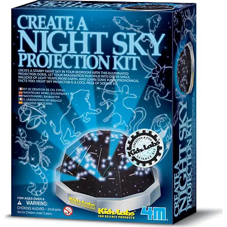 Skab en stjernebesat nattehimmel i dit soveværelse med dette oplyste projektor-dome. Slip din fantasi løs i det ydre rum – millioner af lysår fra jorden. Lær samtidig om nogle sjove astronomiske kendsgerninger. Nattehimmel-projektoren er et virkelig smart videnskabeligt sæt.