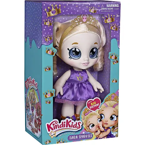 Tiara Sparkles er den sødeste lille pige fyldt med sjov og leg. Tiara har store glitrende øjne og farverigt hår og kommer med aftagelig sko og skiftetøj. Hun har den perfekte størrelse for små hænder at lege med og er helt perfekt at kramme. Piger vil elske at samle alle Kindi Kids dukkerne. Kom og være med i hele Rainbow Kinder universet, en verden af fantasi og opdagelse hvor alt bliver til virkelighed. De kan ikke vente med at gøre din dag magisk.