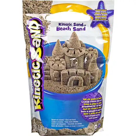 Stor pose med Kinetic strandsand. Posen indeholder 1.360 g sand og har smart genluk funktion. Alder 3+.