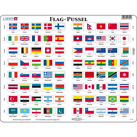Dette puslespil illustrerer en masse forskellige flag, med landenes navne samt hovedstæder, som kan hjælpe børn med at komme ordentligt i gang med geografi, på en legende måde.