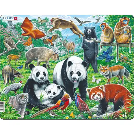 Dette puslespil illustrerer et billede af en masse forskellige vilde dyr, der lever i naturen i Kina. Kender dit barn mon alle dyrene?
