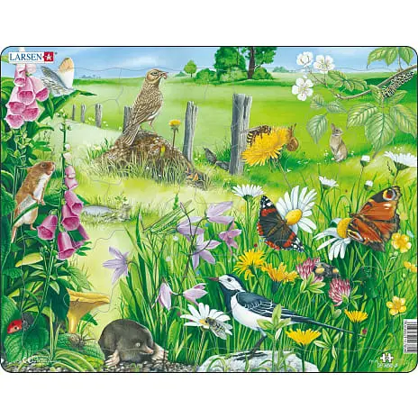 Dette puslespil illustrerer et billede af forskellige dyr og planter, som befinder sig i sit naturlige habitat. Kender dit barn mon alle dyrene?