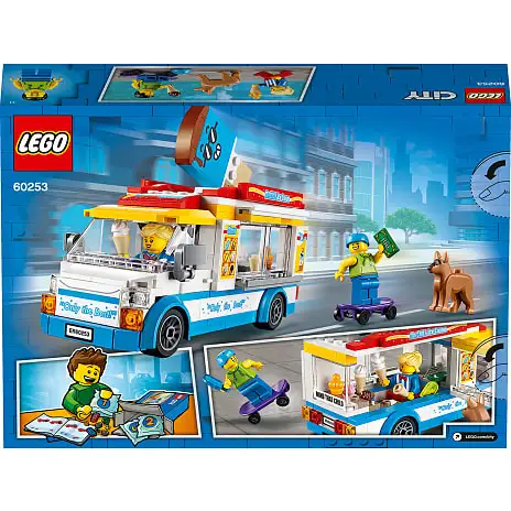 Børn kan blive hverdagens helte med det sjove LEGO® City legesæt Isvogn (60253). Børn kan redde dagen ved at servere seje isvafler og ispinde til svedende indbyggere fra LEGO City! Og med plads inde i vognen til, at issælgeren kan arbejde og køre, samt en skateboard-løbende kunde med en sød hund, er der masser af muligheder for selvstændig og sjov rolleleg.