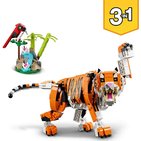Børn kan få mindst 3 forskellige bygge- og legeoplevelser med dette fantastiske 3-i-1-legesæt. De kan bygge en bevægelig tiger med en rød fugl, ombygge den til en justerbar rød panda med bambus og et bonsaitræ, forvandle den til en koi-fisk med bevægelig hale og finner samt åkander, eller dykke ned i fantasien og skabe et andet dyr.